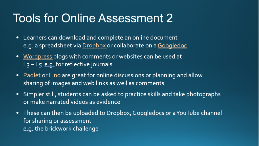 In my current learning facilitation scenarios a significant challenge is determining learners’ specific needs at the outset and planning learning to suit a group profile. The majority of my teaching involves either one-day educator CPD or IT/digital skills courses or short courses such as the AET initial teacher training course. These curriculum models do not afford time to have the luxury of feedback from sophisticated learner diagnostics such as BKSB Skills Builder for maths, English and IT skills as a curriculum team would have opportunity to gather on a longer programme such as an apprenticeship, BTEC or degree course, or time for dialogues with participants ahead of time. Consequently, my strategies for meeting learners needs are based largely on experience of needs of past, similar cohorts and from drawing on research evidence on adults’ digital skills development needs.