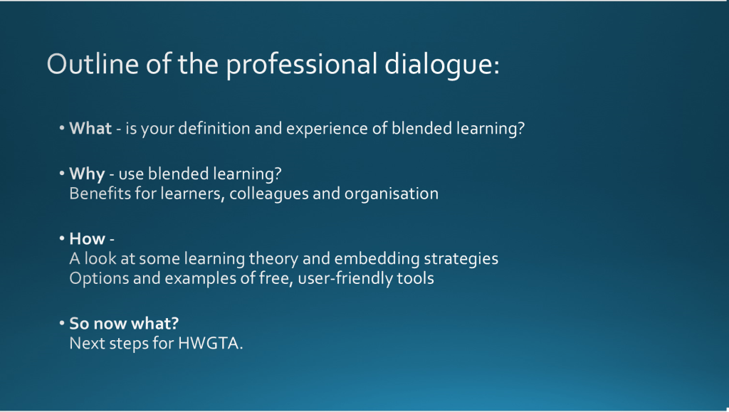 I deliberately design these sessions to be a ‘professional dialogue’ between colleagues and prefer to host it in an informal setting rather than as a formal training session. The slideshow below shows the content of the session and the resources and evidence scaffolding it: