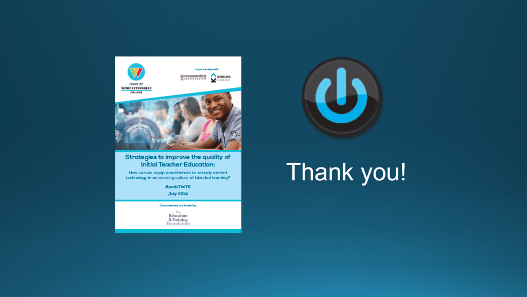 Introducing teachers to Open Educational Resources (OER Commons) such as SlideShare decks and the repositories they can use to easily search for them is another key strategy here. FE teachers are time poor so anything we can do to prevent them from having to ‘reinvent the wheel’ regarding emerging new topics which they are required to embed into their curriculum, such as Education for Sustainable Development (ESD), will prove a real win for them. As well as ‘getting’ I also encourage teachers to be altruistic and ‘give back’ to the Open community, sharing resources where organisational restrictions allow.