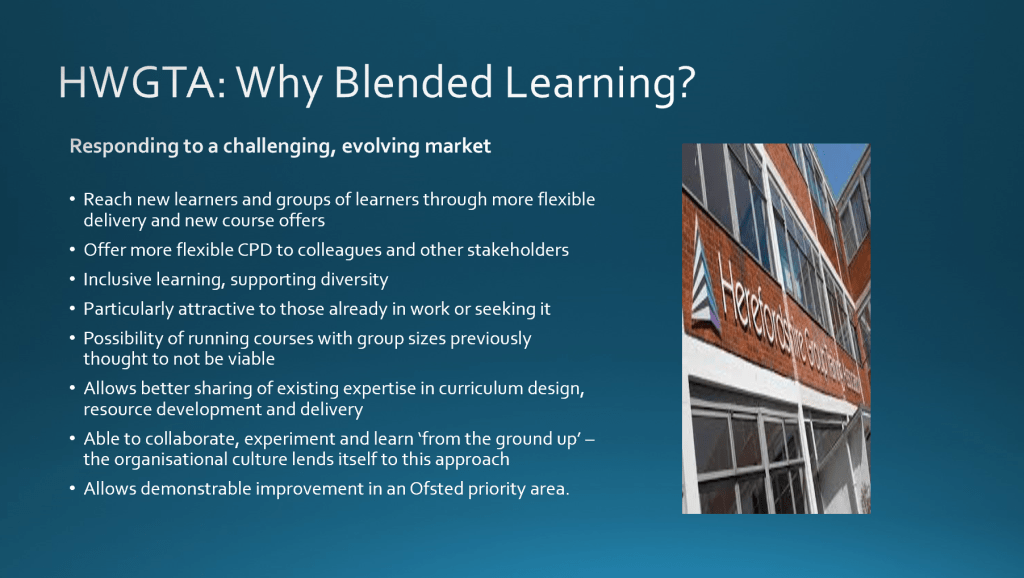 In my work as a digital learning specialist I am often asked by organisations to design and host bespoke CPD events around learning technology deployment. This involves making a strong rationale for the value that learning technology and the use of flexible delivery models can bring for the teacher and the learner and also demonstrating affordable types of learning technologies that can be easily adopted in a variety of learning spaces.